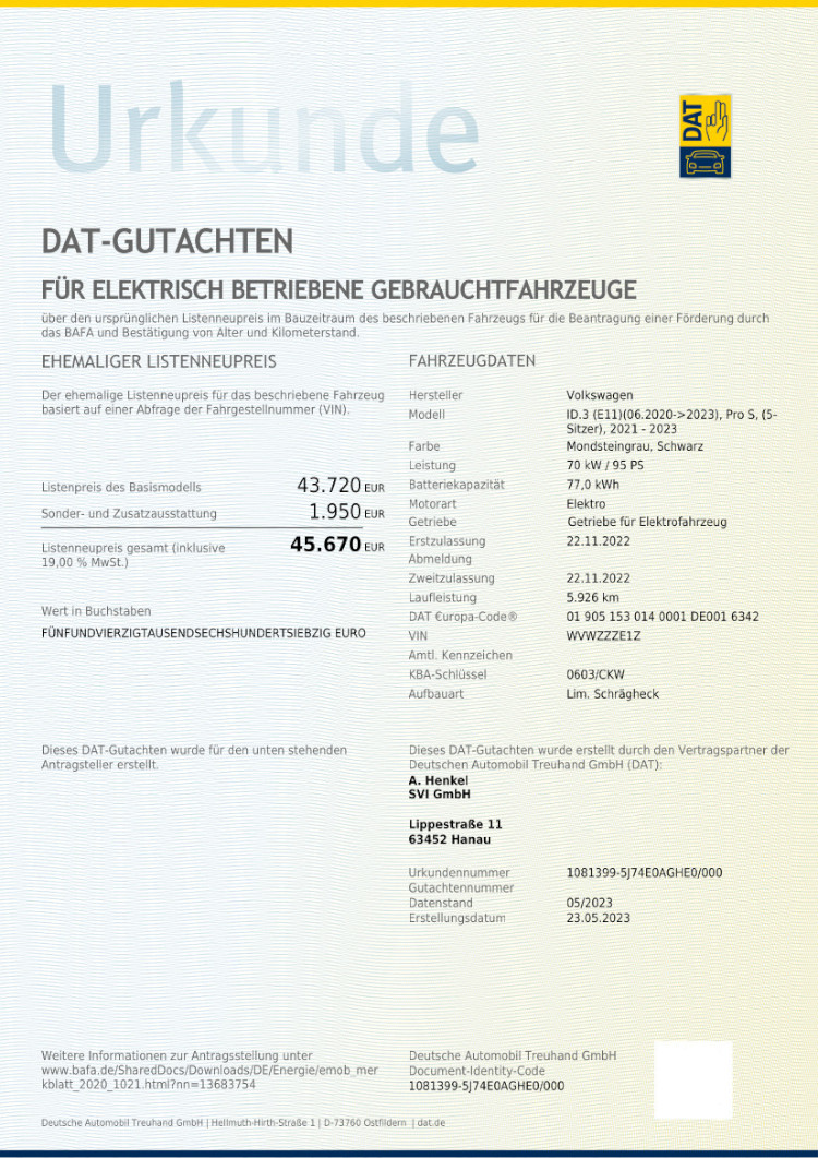 E-Auto-Prämie für Gebrauchte: So weisen die Kfz-Sachverständige der DAT den Neufahrzeugpreis rückwirkend nach: